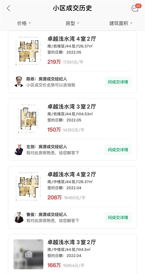 11、二手历史成交价:共成交过18套,其中17套为2022年成交,成交最高单价为1.87万/平的142平方高楼层大四房,成交日期为今年6月份,成交最低单价为1.435万/平的104平方低楼层三房,成交日期为今年5月份