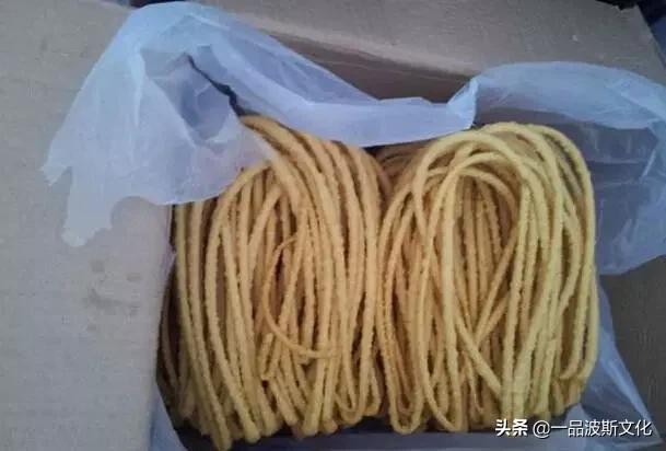 炸好出锅的香喷喷的馓子来咯咸味:色泽金黄、香酥可口