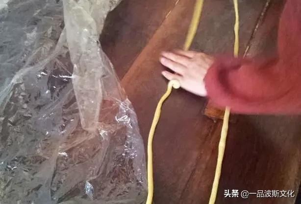 第四步:搓馓子面团醒好,柔软度适宜搓条的时候就可以开始搓制馓子了,我一半都是从面团中间掏个洞开始捏圆,然后放到案板上搓,老妈为了省力气,所以和面的时候就把面团弄的比较软,所以很容易搓开