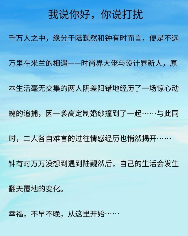 本文讲述的是职场新人邂逅时尚总裁,因为一袭婚纱撞出完美爱情的故事。这里的梦想与奋斗的味道更浓。