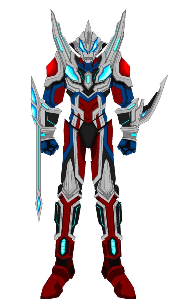 第二个机甲形态是捷德奥特曼的诺亚继承者,主要有究极赛罗形态和奈克瑟斯奥特曼红色青年形态融合而成的。机械脸部的造型和奈克瑟斯一样,但是眼睛还是捷德标志性的狭长蓝色双眼,肩膀有两个银色的机甲尖刺,两只机甲手臂上,其中一个是锋利的机械倒刺,而另一个是机械长剑,上面还散发着蓝色的光芒,必杀技是神圣光剑超极限驱动,这个造型的捷德还是很帅气的。