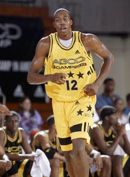 霍华德是高中生直接进入NBA,在高中时期他身材算很魁梧了,但是相对于NBA级别,那还是显得有点纤细。最起码那个时候,球衣穿在身上还是松垮垮的,没有像后来把球衣穿成了紧身衣的感觉。