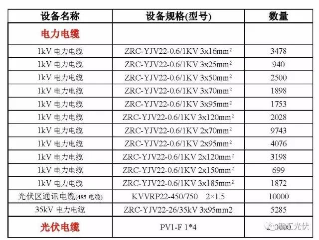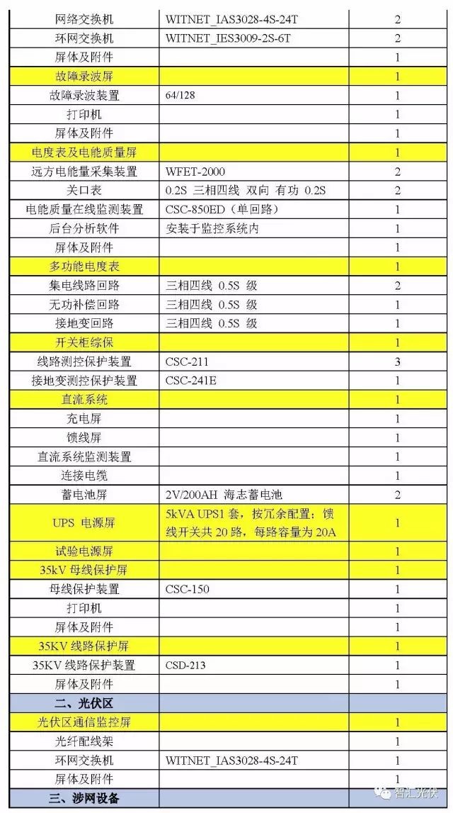 某2017年光伏电站的电气设备项目如下表,设备型号与工程量与目前差异很大,但设备种类基本相同。供参考。