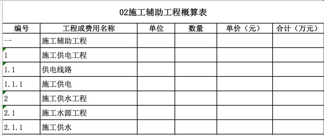 包含:发电厂区工程、变电站工程、房屋工程、交通工程等费用。如下表所示。