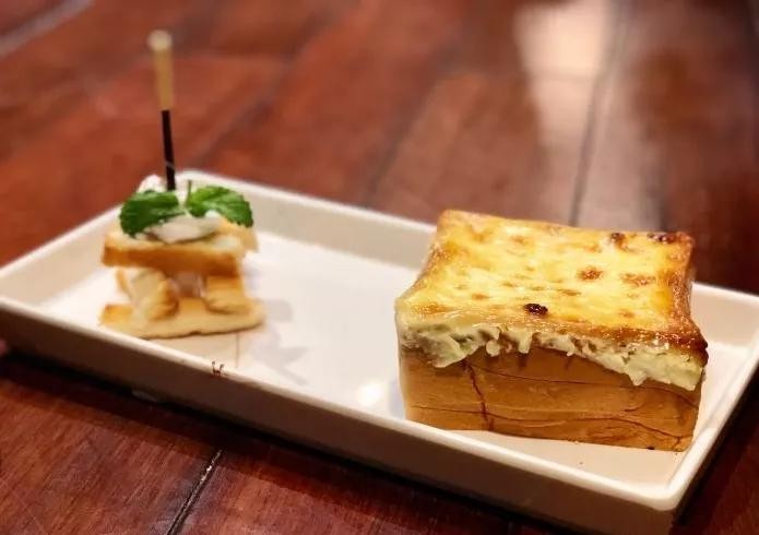 “闷骚南瓜”也是小小一块十分精致外面是面包里面是南瓜上面有-层煸南瓜还是芝士既有面包的酥脆又有南瓜的香甜十分不错。
