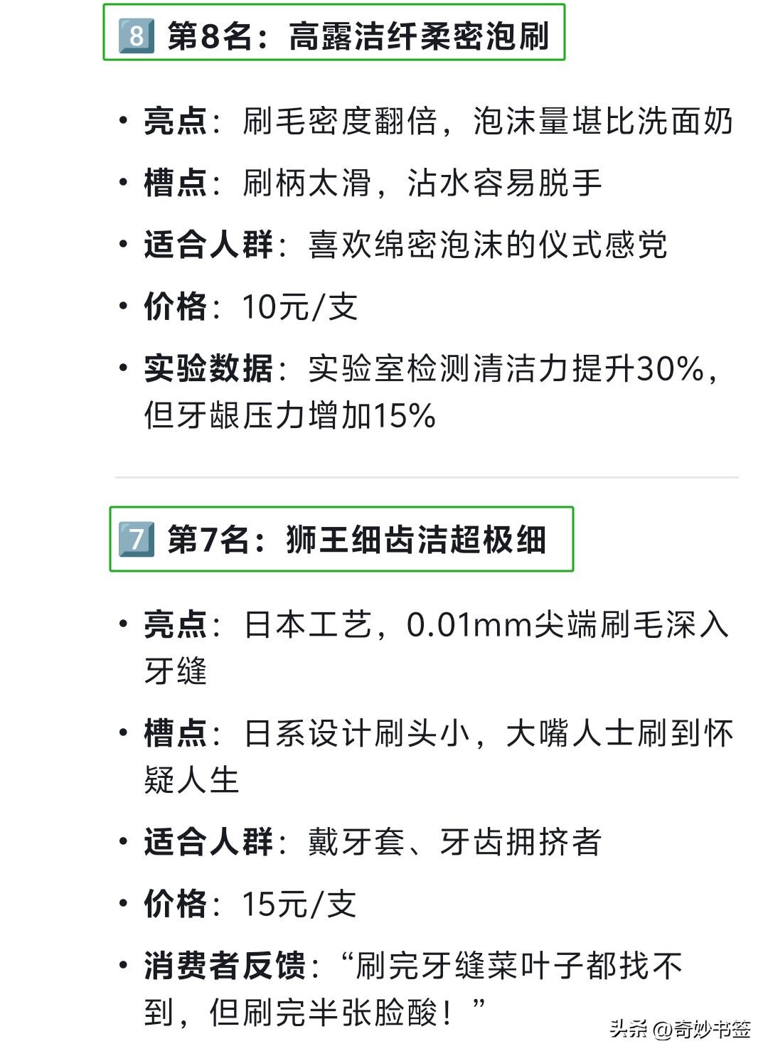 牙龈敏感→纳美/舒客牙缝清洁→狮王/惠百施性价比王者→黑人/纳美懒人福音→usmile电动款