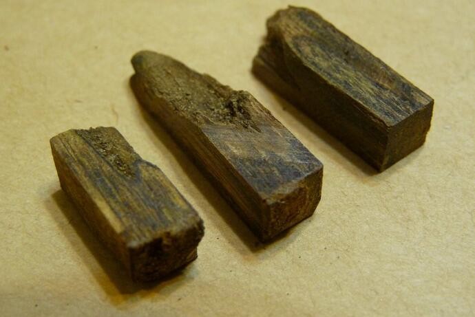 皮革厚且呈红褐色者,多产于沼泽区,必须刮很深才能见到软油,是比较差的品相。土沉绿棋因为油脂密度高且为无活性纤维相间的软丝熟香,时间久远的绿棋,都带有凉气,与白棋在伯仲之间。