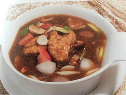 3.锅留余油,大火烧开,加葱姜末煸炒出香味,下入煎好的鱼块,西红柿,香菇,洋葱,倒入没过鱼块的清水,加入调料,大火烧至5分钟后,上湿淀粉勾芡,最后淋上芝麻油,出锅装碗就可以了。