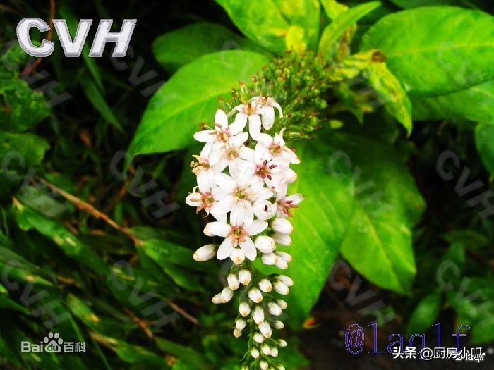 花为总状花序,生于茎的顶端,花茎密,白色。
