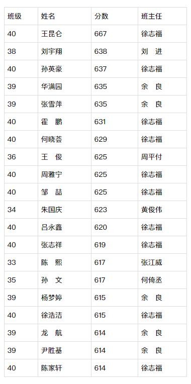 理科:全县第一名,王昆仑同学,667分;全县前十名,息县一高占7人;全县前20名,息县一高占17人;全县前50名,息县一高占44人;全县前100名,息县一高占92人。600分以上38人。