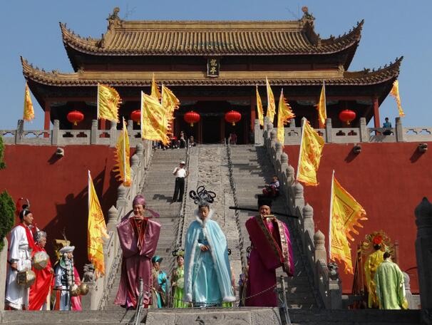龙亭,不是亭而是建筑在一座高达13米的巨大青砖台基之上的殿堂。龙亭做北朝南,高踞在台基之上。从地面到大殿有36仗高,代表36天罡;72级台阶,代表72地煞。台阶中间是雕有云龙图案的石阶。登上平台,四周有石栏围绕。大殿是木结构,种檐歇山式建筑,很壮观。游人登上平台,入殿观看陈列的文物后,多在石栏前眺望开封古城景色。龙亭前有一条笔直的大道,道旁有两个东西对峙的湖,东为潘湖,西为杨湖。龙亭坐落在古城开封的西北边,占地面积83.13公顷。是中外旅游者慕名而来的理想景区。