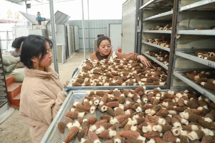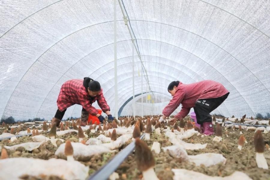 近日,黔东南州天柱县凤城大坝种植基地的羊肚菌迎来采收期,工人们在大棚里穿梭,将羊肚菌采收、装筐、烘干,处处一派忙碌景象。
