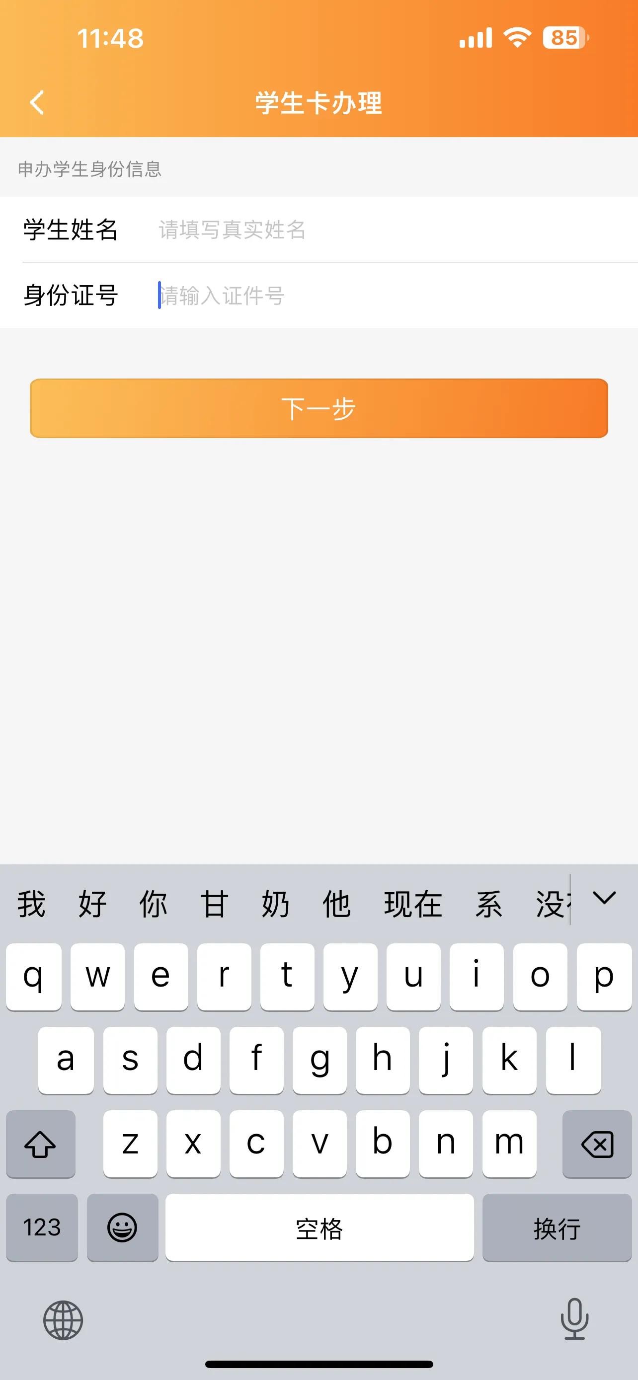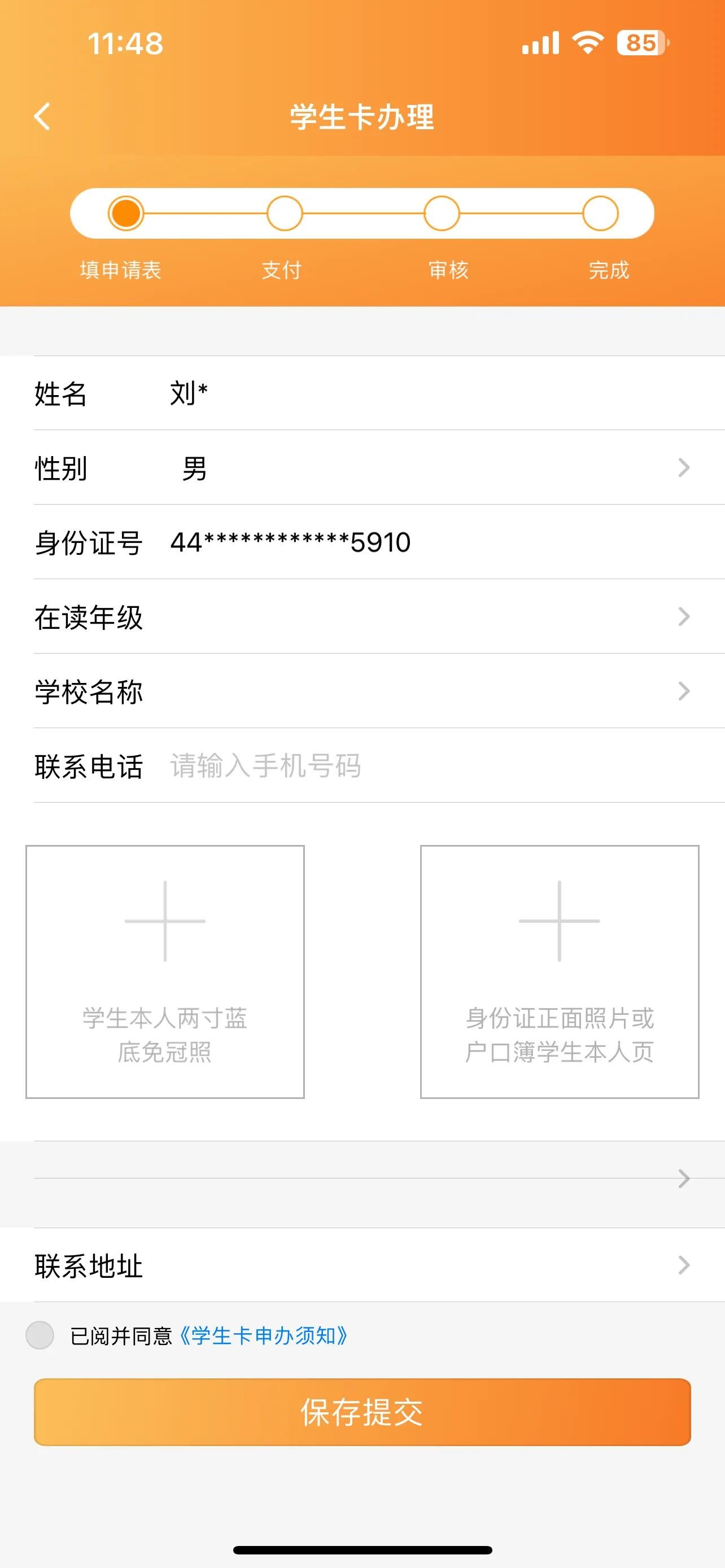 填好孩子姓名和身份证信息。