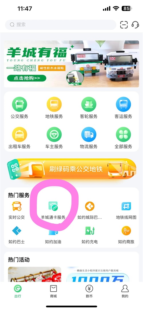 点击羊城通卡服务