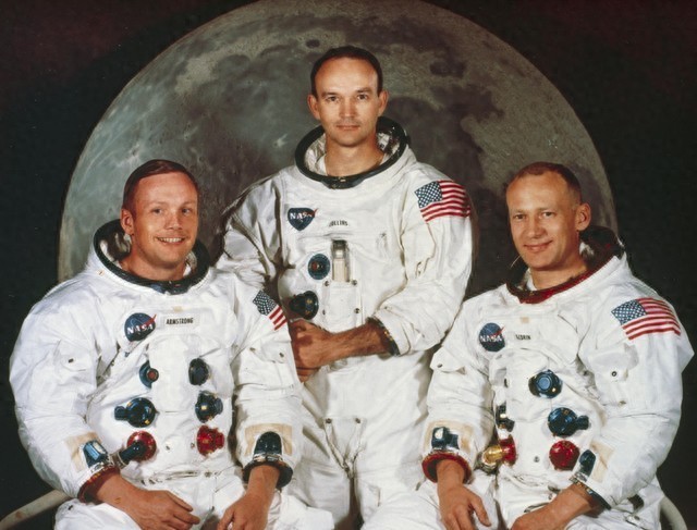 在1969年的7月16日,佛罗里达肯尼迪的航空中心,有三名宇航员,他们分别是阿姆斯特朗船长,奥尔德林工程师和科林斯。他们在人们的欢呼中,迈着自信的脚步走了出来现场有大量的记者和政府官员。他们怀着紧张的心情进入了火箭,随着准备工作的就绪,他们登上了登月舱,很快一颗巨大的火箭缓缓升空了
