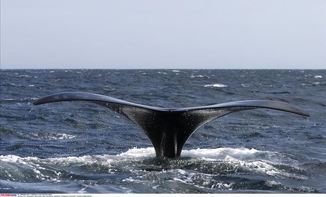 北太平洋露脊鲸具有特殊形状的背鳍,它呈三角形状且相对小型,通常位于身体中部的后部。这一鳍的形状有助于它们在水中的稳定性。它们的尾巴非常强大,呈狭长形状,被称为“露脊鲸尾巴”。