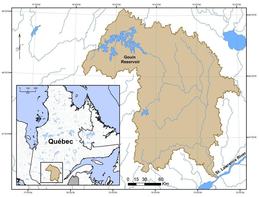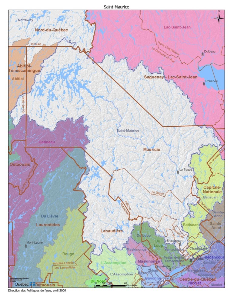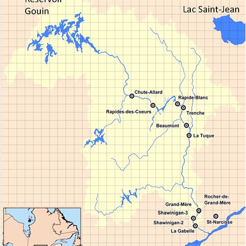 三、左岸(北岸)其他支流:马尼夸根河是圣劳伦斯河第三大支流,源自马尼夸根湖,河长200公里,流域面积45800平方公里,流量1020立方米/秒。马尼夸根湖从外形上看类似同心圆的环形状,其湖面面积大约1200平方公里,集水面积29241平方公里。圣莫里斯河是第四大支流,河长563公里,流域面积43300平方公里,流量730立方米/秒。
