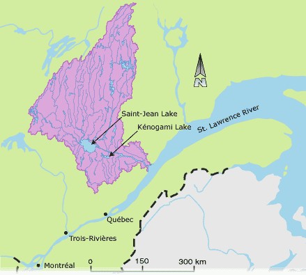 二、萨格奈河:发源于圣尚湖,东南向注入圣劳伦斯河,河长170公里,流域面积88000平方公里,流量1750立方米/秒,其流域面积和流量均在圣劳伦斯河支流中居第二位。圣尚湖集水面积为71947平方公里,占萨格奈河流域的80%以上,汇入圣尚湖的主要支流有佩里邦卡河(河长451公里,流域面积28200平方公里,流量635立方米/秒)、米斯塔西比河(河长298公里,流域面积21900平方公里)、阿舒阿普穆舒安河(河长181公里,流域面积15746平方公里,流量298立方米/秒)等。