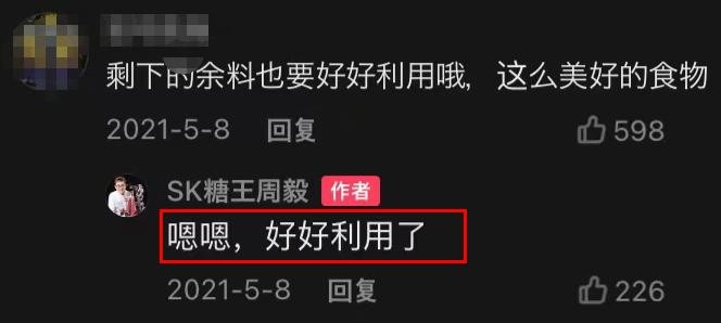 一部分网友也表示,像周毅这样的作品,很多时候都会被保存起来用于展览,而且翻糖这种材料要比其他材料更环保,更容易降解。