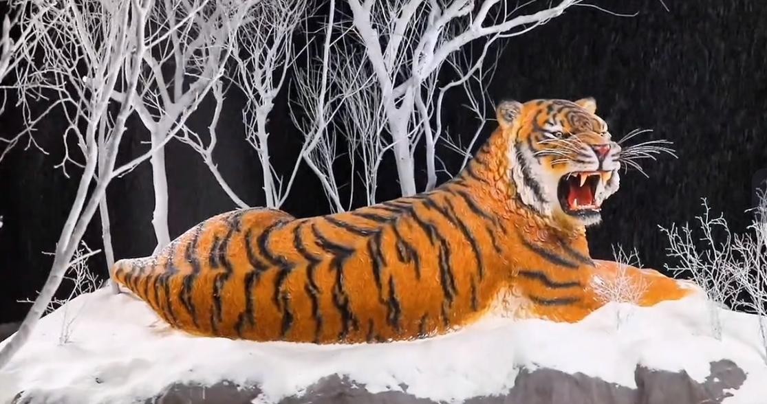 为了庆祝虎年,他用重达200斤的蛋糕和翻糖,做出了一个长达3米的翻糖东北虎;