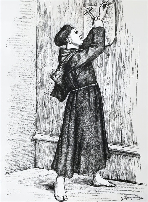赎罪券最早是在1095年第一次十字军东征时教皇乌尔班二世为了鼓舞士气,颁发给东征将士的。基督教讲人都有原罪,有了赎罪券就可以在末日审判时抵消自己的罪过。但到了14世纪赎罪券彻底变味,沦为了教会敛财的工具,随意向教徒兜售。1517年10月31日,修士马丁·路德将自己写的《关于赎罪券效能的辩论》张贴在德国维滕贝格诸圣堂大门上,文章共有九十五条论纲,条条针对腐朽贪婪的教会。路德号召人们不要购买教会兜售的赎罪券,因为教皇没有免除人的罪恶的权力,免罪权在上帝。只要虔诚地信奉上帝,灵魂就可以得到解脱。并将《圣经》由拉丁文翻译成德文,便于人们识读。教会垄断《圣经》的时代随之终结,轰轰烈烈的宗教改革运动由此拉开,基督教的新分支——新教由此产生。