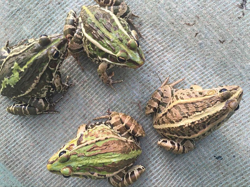 4、喂给高能量的蛙饲料:冬季如遇阳光,天气回暖,蛙可爬出越冬场所觅食。可在原来蛙饲料配方的基础上,再添加3%的油脂,使蛙饲料所含的能量增高。喂给此种高能量饲料,可增强蛙的御寒能力。
