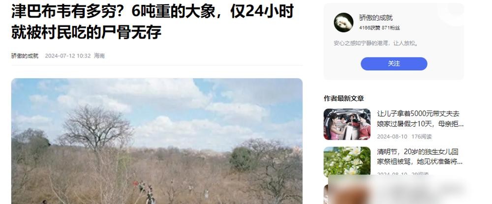 津巴布韦有多穷?6吨重的大象,仅24小时便被村民分食完毕!