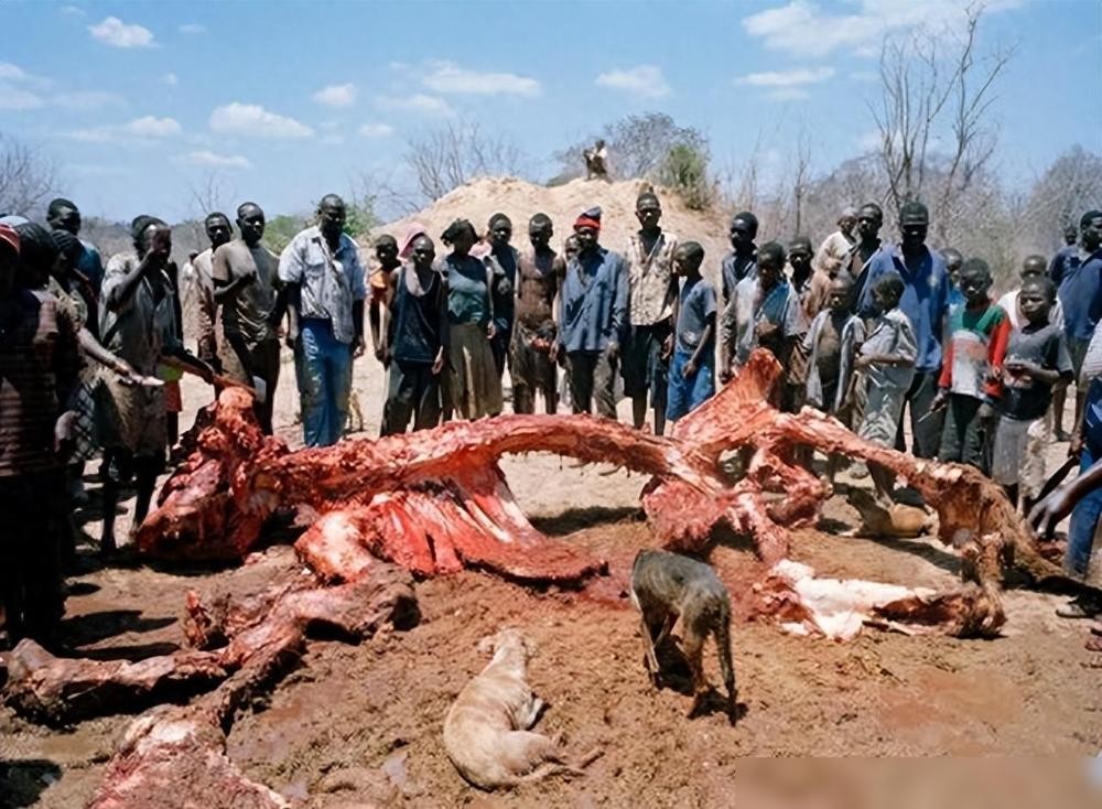 甚至有媒体报道曾经有一头6吨重的大象死在了津巴布韦的村落里,村民们仅用了24小时的时间就将这6吨的大象吃个精光。