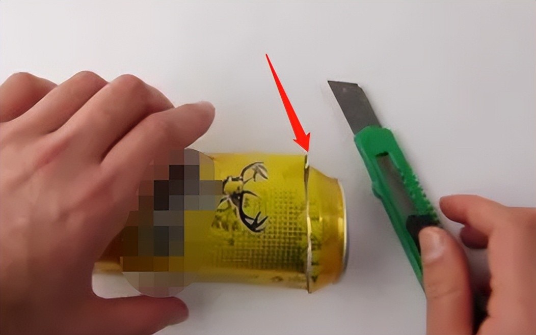 不知道有没有美工刀恐惧症的机友,像图中横截面切割的操作,既要小心美工刀不要弄到手,又要防着易拉罐的缺口别刮到另一只手......