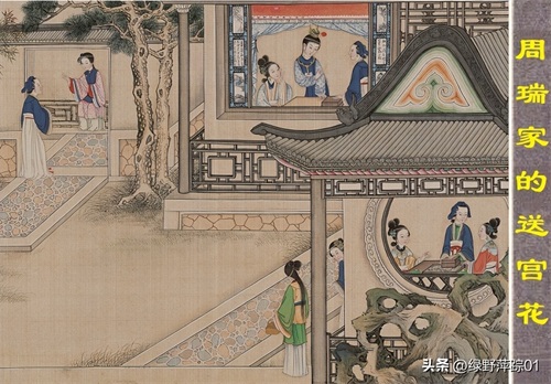 周瑞家的正要跟宝钗多说几句话,却被王夫人打断。听到王夫人喊话,周瑞家的赶紧过去禀事。回了刘姥姥的事,周瑞家的便要离开,薛姨妈却把她叫住:“我有一宗东西,你带了去罢”。于是,薛姨妈唤过香菱,捧出了一个锦盒,让周瑞家的把锦盒中的十二支宫花送给王熙凤、林黛玉以及三个姑娘和秦可卿。