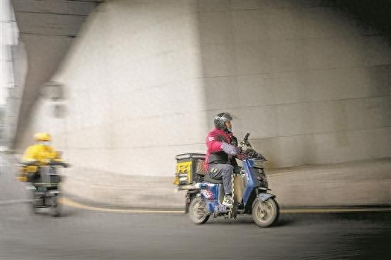 对外卖骑手而言,“快”几乎成了第一要义 羊城晚报记者 蔡嘉鸿 潘俊华 实习生 黄贝潼 摄