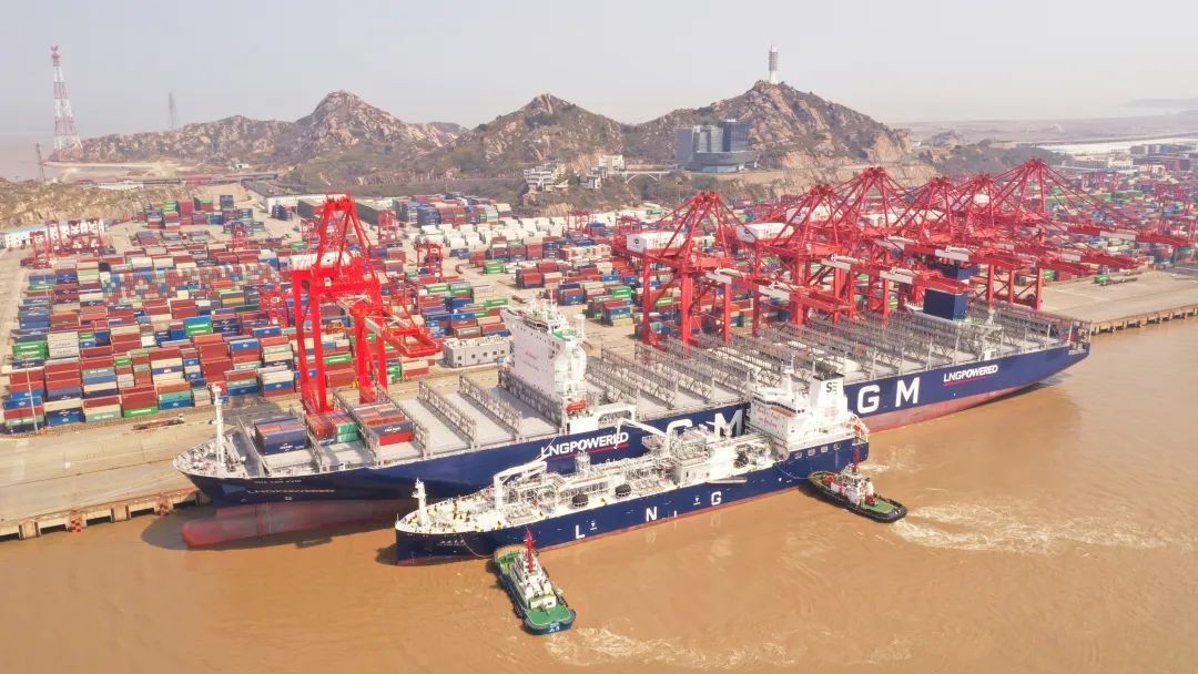 上海港推出清洁能源加注服务,正是瞄准了不断投入市场的双燃料新船,通过加强合作,让国际船东选择上海港作为能源补给母港,帮助上海港进一步集聚航线资源、提升吞吐量。