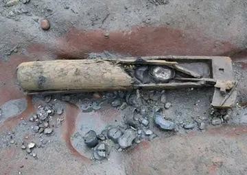 这是张献忠命木匠打造的木鞘,圆筒状的木鞘里装满了银锭,一共大概有20个完整的银锭,规格多以五十两为主。同时在木鞘周围还散落着许多银锭,这次发掘的文物里还有许多的金册银册,上面记录着有关皇室的重要信息,还有很多是达官贵人的镇宅之宝。