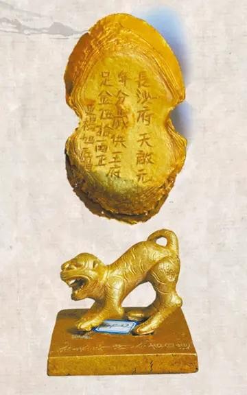 这枚虎钮永昌大元帅金印的来历可不简单,这个是由张献忠亲手打造而成的,金印的上面是虎钮,下面为印章,在印章上印着能代表张献忠身份的阳文,据专家鉴定,这些文字记录的是张献忠自封为永昌大元帅。