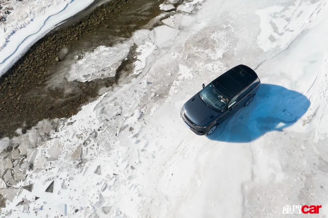穿越河道与蜿蜒的乱石小路,宽阔的冰面浮现在眼前,这是今天的目的地。在检查过冰面的坚实程度后,我们小心翼翼地向冰面前行。第二代Terrain Response智能全地形反馈适应系统正在忙碌着,但驾驶者却在沉浸在发现美景的喜悦中。我们很庆幸,横跨冰面时没有遇到极端的情况,自动模式足够应付当下的路况,当然如果真的碰到低附着力的路面,采用牵引力起步功能仍然能够顺利脱困,这就是揽胜的魅力。事实上,我们只尝试了第二代Terrain Response智能全地形反馈适应系统中的其中3种模式,但它实则有9+1种模式可选择,相信这就是揽胜的魅力吧。