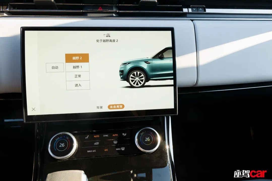 如果你此前没有驾驶过路虎揽胜,那么这台揽胜运动版的动力输出给你的感觉就像一台自然吸气发动机的车型,以平顺为主,但我在很短的时间内分别试驾过两款车型,揽胜运动版的低扭表现明显比路虎揽胜更加敏感,油门踏板几乎没有虚位,轻点即走。针对油门持续施压,浑厚的排气声浪会愈发的明显。当车速不断提升,稳定在120公里/小时的时候,它仿佛又回到了与路虎揽胜一样的平顺节奏,最高挡位下,转速稳定在1500转/分钟左右,发动机声音几乎消失,车内异常安静,仿佛车速只有80公里/小时一样。就像高铁一样稳定,至于车厢内,人们几乎察觉不到速度的快慢。