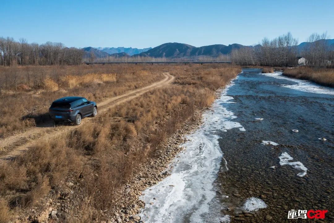 持续释放肾上腺素只是今天的其中一个项目,揽胜运动版充分地诠释了它对于“运动”的理解。不过,它终究是一台揽胜,因此免不了一次非铺装路面的考验。正值北京的寒冬时期,远山深处早已白雪皑皑,湍流的河水正在缓慢地结为冰面,听说那里很美,所以我们打算去看看。当然,这也是对这台新车的一次考验。