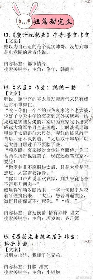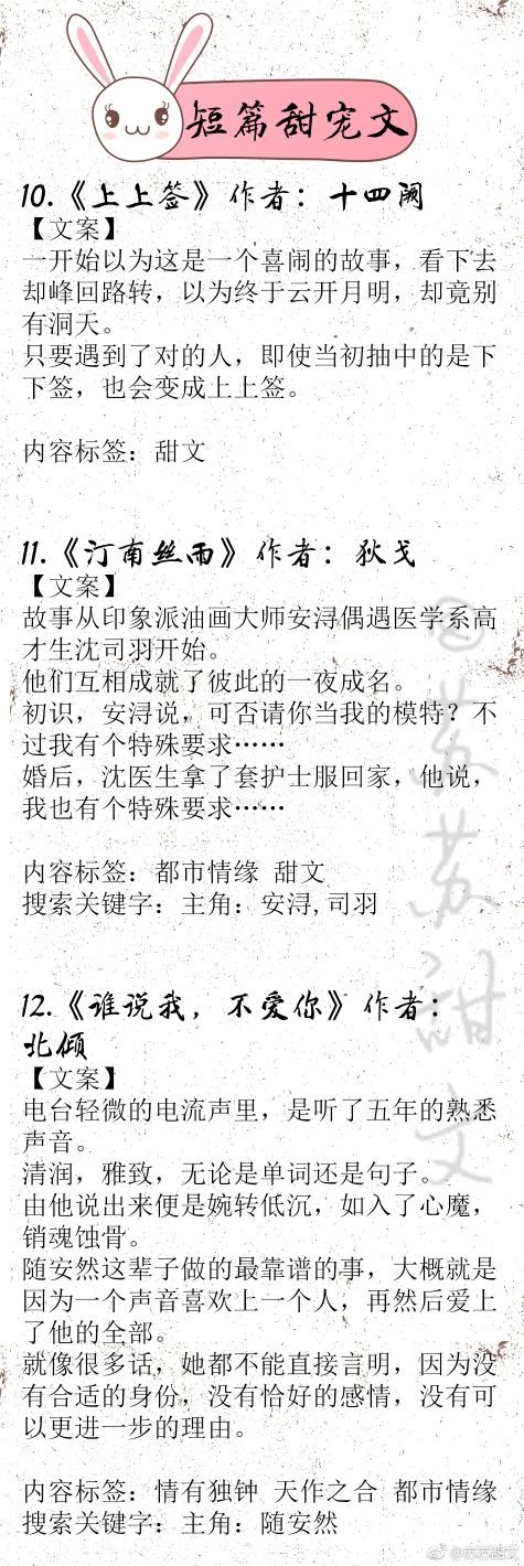 今天盘点那些最适合睡前阅读短篇甜宠文!短而精悍,全程不虐,甜而不腻,看完一起甜甜入睡。