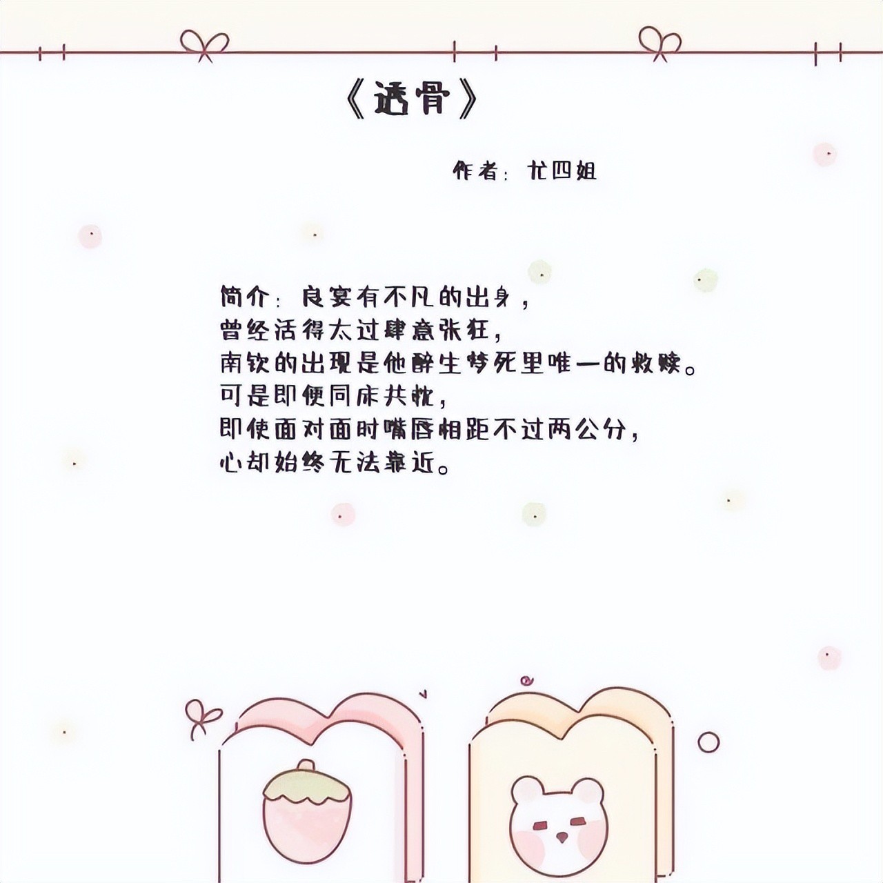 短书评:结局男主女主在一起了,还有了两个孩子,一男一女,就是过程有点虐,女主的爸爸自杀了,所以她怨恨男主,疏离他,后来有一次有了孩子,男主又误会不是自己的要打掉,女主为了孩子就逃走了,后来三年后被找到,一家团圆了。男女主误会很多,不过最后都解开了。别看是江南恨这个名字,其实还是挺温暖的文。