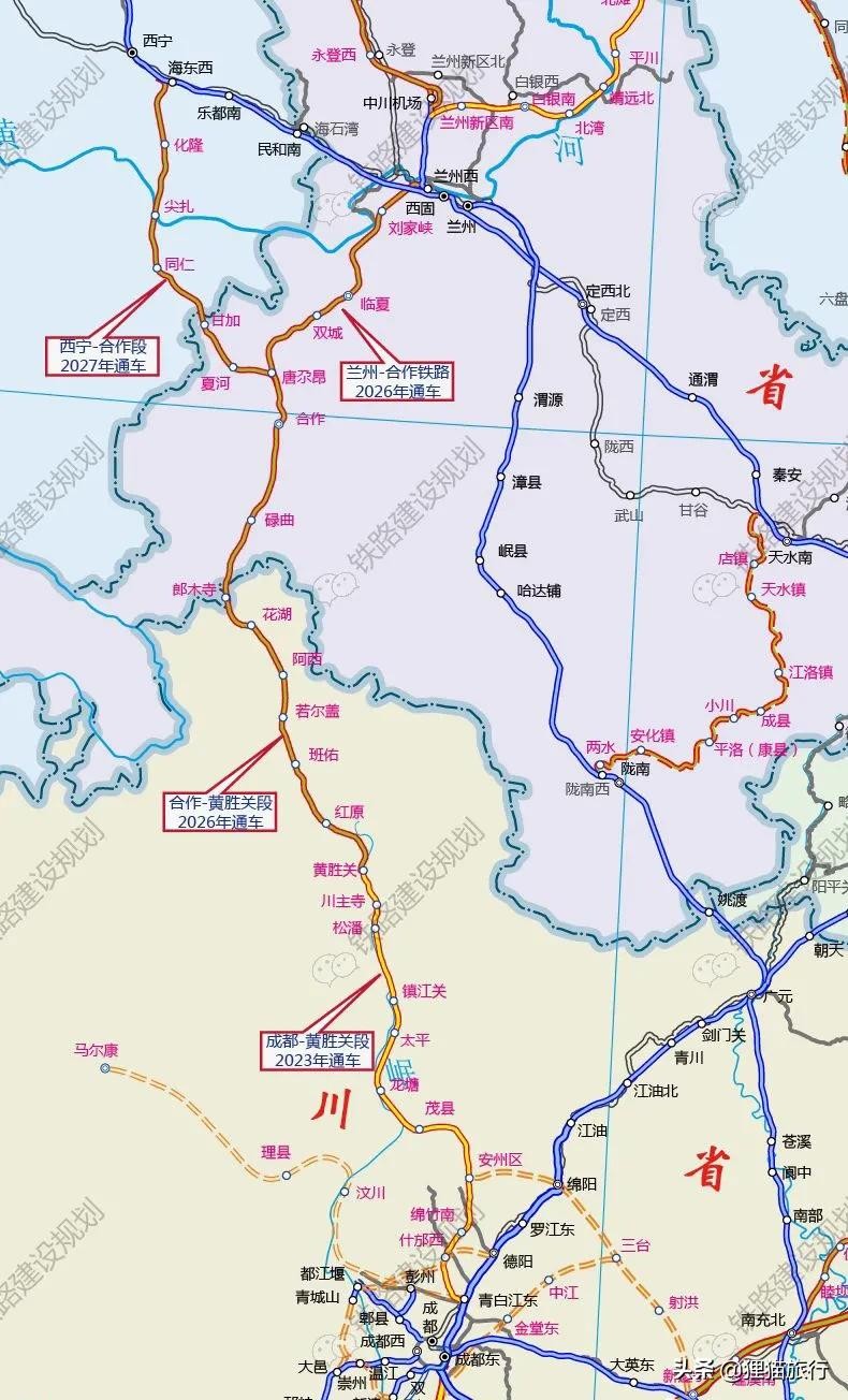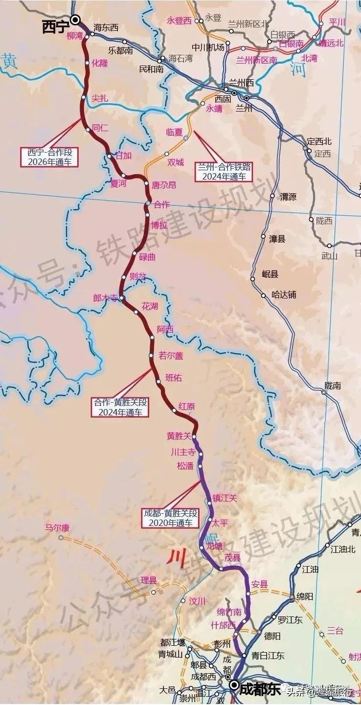 西宁至成都的西成铁路,沿途经过同仁、合作、若尔盖、黄胜关