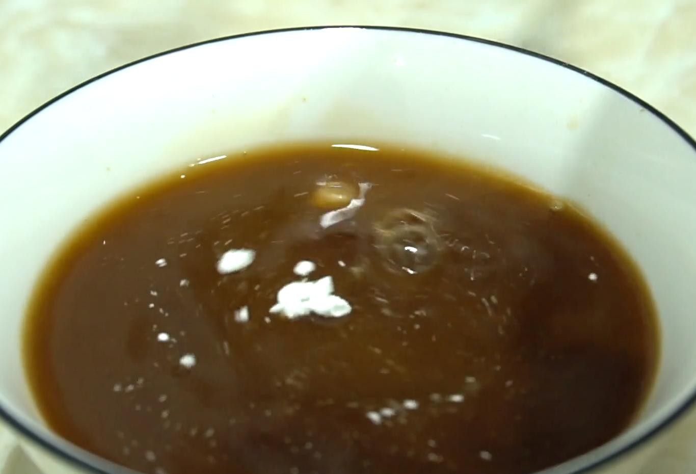 6,调一个料汁:碗中加入生抽,老抽,香醋,胡椒粉,食盐,一勺淀粉,少许清水搅拌混合均匀。