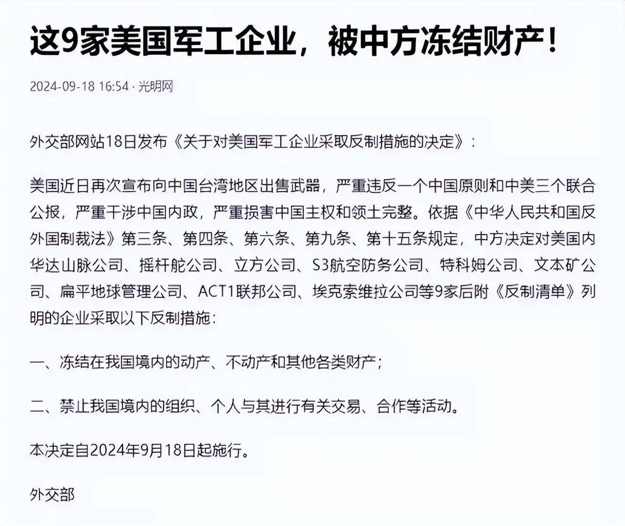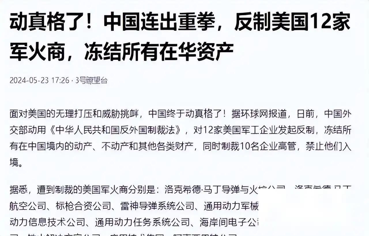 作为美国最大的军工企业之一,洛马公司一直以来都与美国当局关系密切,涉及战斗机、导弹等核心领域。而此次制裁的直接原因,正是因为洛马公司向地区出售武器,严重触犯了东方大国的底线。