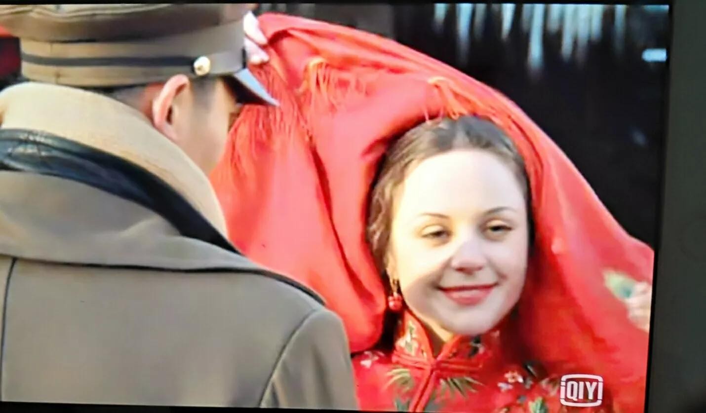 是啊,这个葛莉儿是前苏联白俄贵族,因战争流落到我国东北边境,被执行任务的高志航(朱亚文饰演)一眼看中,在与鬼子的战斗中,拉着葛莉儿坐上他的战斗飞机到了沈阳,就成了他媳妇。