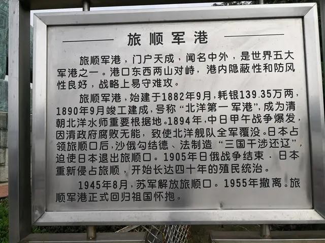 至1894年中日甲午战争,清政府在旅顺只经营了16年,随后的几十年由日俄分别侵占,1955年4月15日,中苏举行旅顺军港交接仪式,从4月16日起旅顺军港的防务由中华人民共和国掌管。现做为北海舰队的一处训练基地,西港正在进行扩建之中。