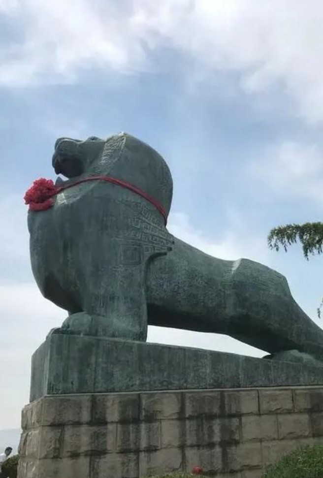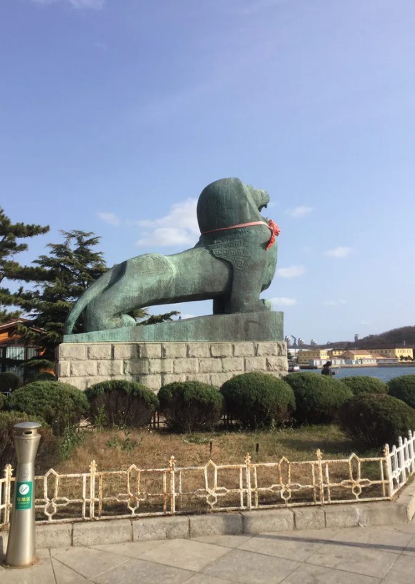 公园西侧那尊巨大的铜塑《醒狮》,取意于旅顺口元代曾名“狮子口”,象征着祖国日益强大,如同睡狮猛醒,昂首待发。