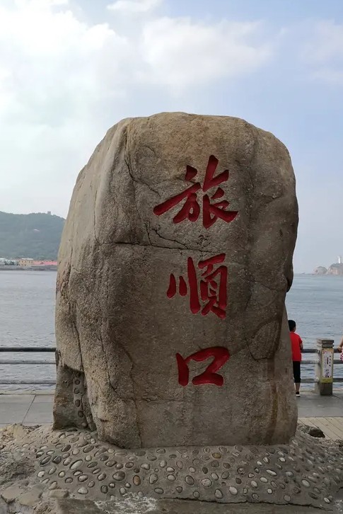 走进大连旅顺口军港公园园门,首先映入眼帘的是一块高2.4米,厚0.8米,横宽1.5米的石碑。碑石是从老铁山精选出来的天然巨石加工而成,重达一吨左右。碑石正面镌刻着“旅顺口”三个大字,背面刻有记载旅顺口由来的碑文。