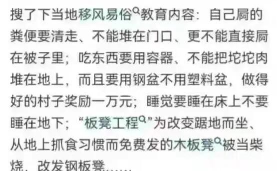 凉山彝族人在外的行为习惯,部分源自传统的生活方式。经搜索发现,当地移风易俗的教育内容包括:要求村民自行清理粪便、不将食物堆放在地面、使用适当的餐具等。这些教育内容的背后,反映出彝族部分地区在生活习惯上存在的现实问题。