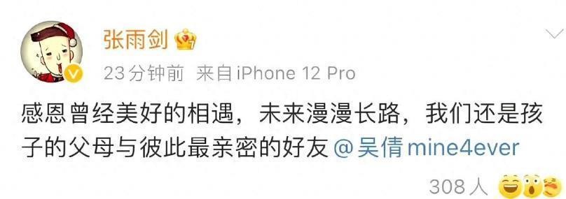 就在网友们确认这段关系的时候,正好是张雨剑和吴倩公开宣布离婚的那会儿。