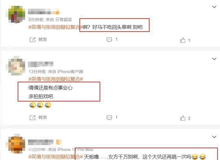 有人猜他们可能又复合了,也有人觉得就只是单纯聚一下而已,毕竟当年吴倩和张雨剑的事儿闹得挺不愉快的。