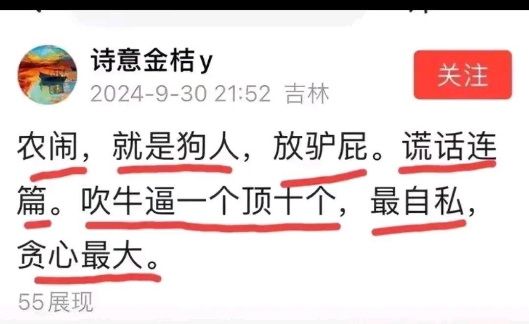 还有,近些年以来你们为了既得利益而经常在网上骂人,每年都去北京上访,这又算是什么闹?是工闹还是城闹?为什么同样都是中国公民,你们可以闹、可以提意见,而农民提建议你们就一百个不乐意?这难道不是双标吗?这难道不是“”只准州官放火,不准百姓点灯吗”?